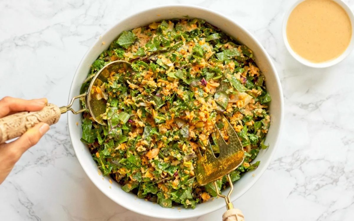 Looking to splurge, yet keep those detoxifying systems happy? Kale may seem like a strange choice, but let’s step out of the box this holiday season! Leafy greens are one of the best sources of plant-based nutrients that specifically boost the health of your detoxifying systems. This Thai Kale Salad With Peanut Sauce recipe by Natalie Martin MS, RD and Lexie Staten MS, RD does the trick with four cups of detoxifying kale, yet topped off with a rich peanut sauce based around peanut butter, tamari, hot sauce, and ginger.