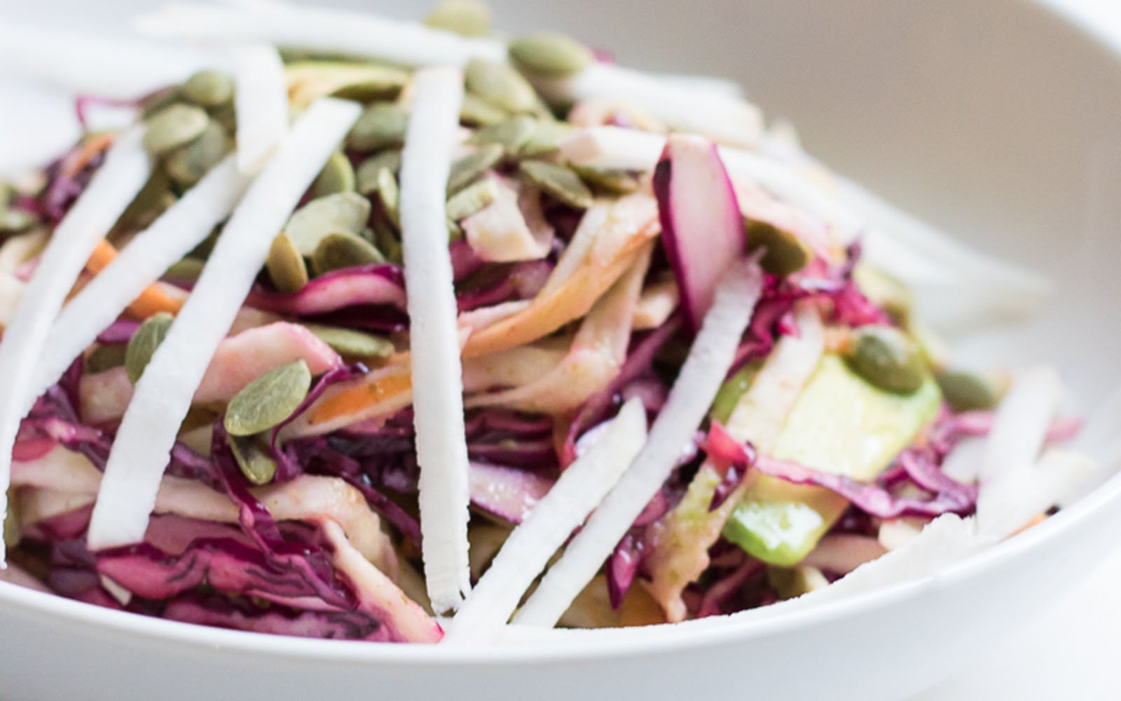 One of the best substances to consume to help you get some good shut-eye is tryptophan. It’s not just that Thanksgiving turkey that offers this wonderful, sleep-promoting compound either! This Simple Turnip Salad recipe by Natalie Yonan is rich in pumpkin seeds, which happens to be a great source of tryptophan!