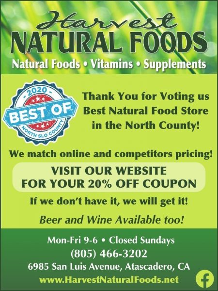 You voted. We counted. This is the Best of North SLO County 2020 as decided by popular vote from the community, and the winner of Best Health Food, Natural Food, or Grocery is: