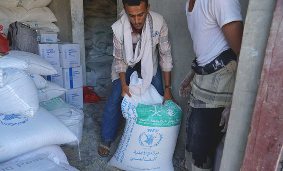 A World Food Programme food distribution point in Dhubab, Yemen. (November 2018), by OCHA/Giles Clarke