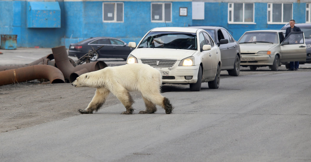 The city, a nickel-mining center with a population of about 175,000, is just inside the Arctic Circle. But residents of Norilsk had not seen a polar bear so far south in about four decades, according to local reports. Trudging along on mud-blackened paws that contrasted with the still-white fur across its back, the bear was seen this week roaming rusty scrap yards, concrete housing developments and even in the city center.