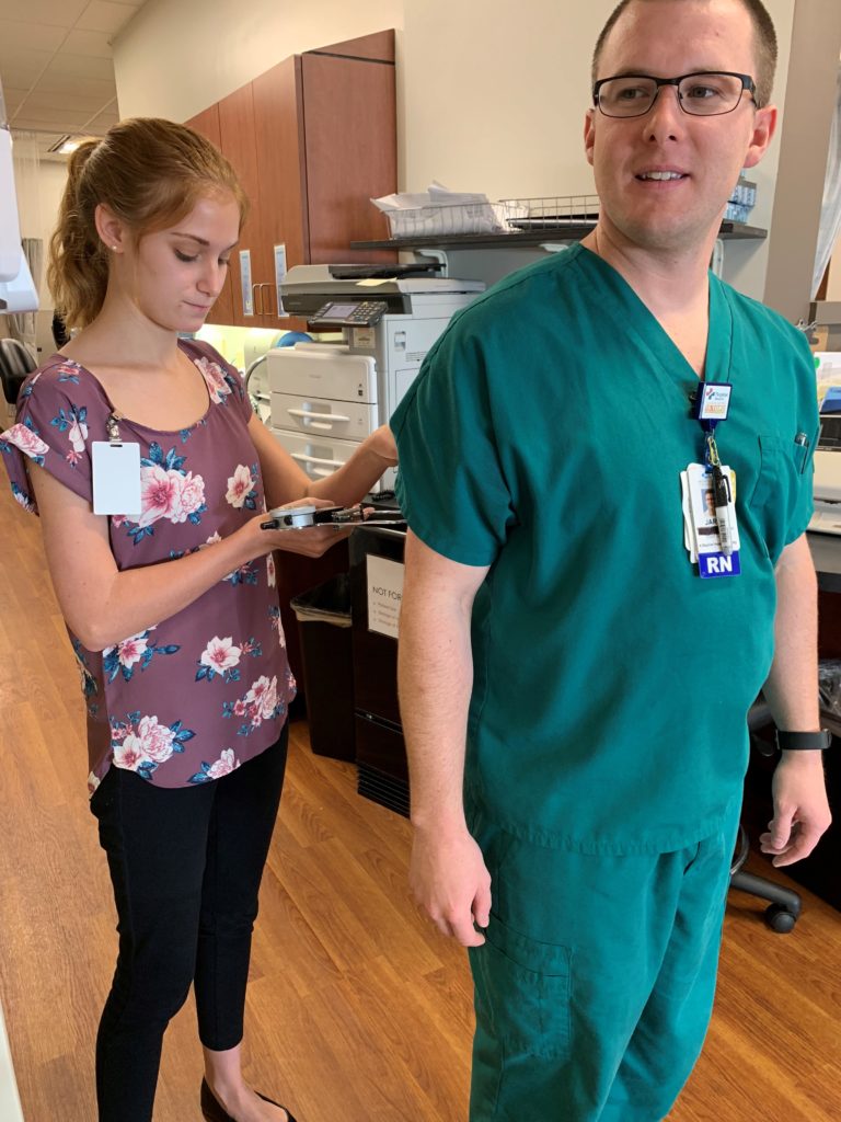 TROY student Sydney Elston discusses the blended tube feeding research project with healthcare professionals in Montgomery.