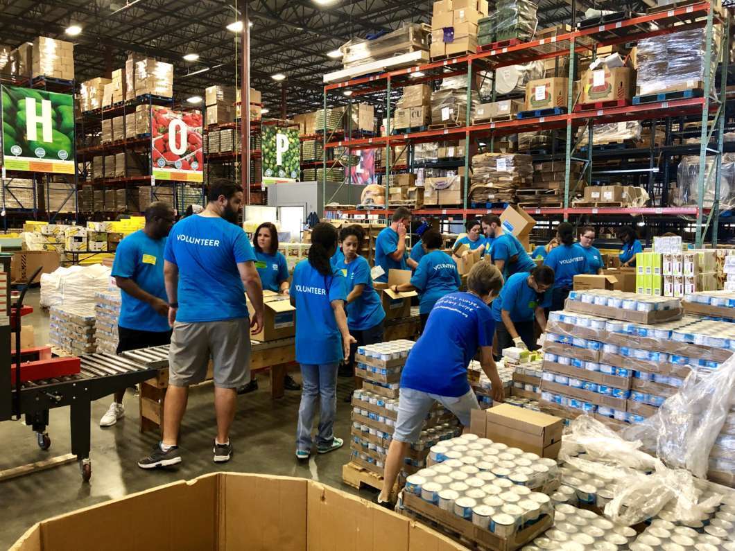 Volunteers at Second Harvest Food Bank of Central Florida packed food and other supplies into disaster relief packs in Orlando today.
