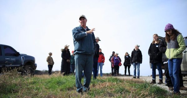 [Video: Fischer talks to a group of IU representatives during a visit to his farm.]