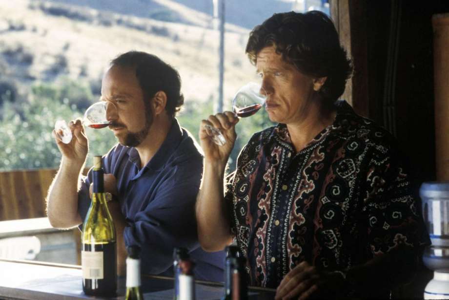 Actors Paul Giamatti (left) and Thomas Haden Church in a scene from the 2004 film “Sideways,” which put Pinot Noir on the map.