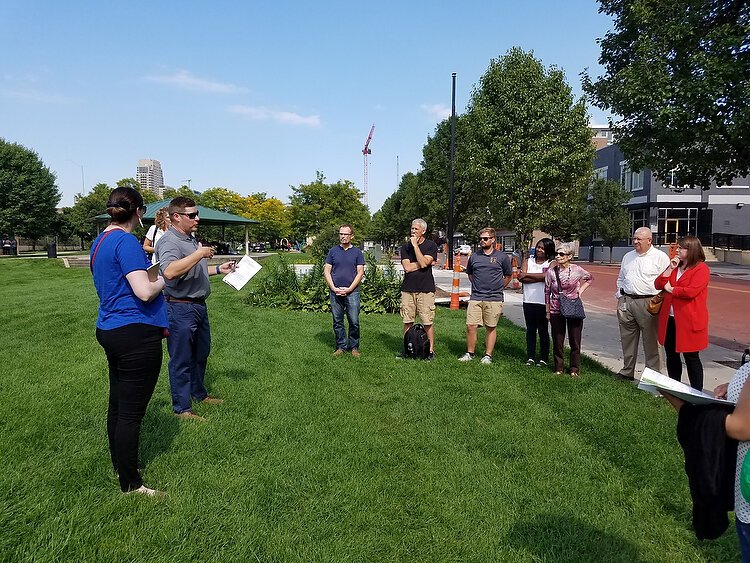 At all four parks, MGG developed the detailed natural lawn care management plan and EarthWorks Turf created the soil fertility plan. Both organizations joined the City of Grand Rapids to explain the plan during a September 20 tour of Heartside Park and an Organic Parks Lunch & Learn.