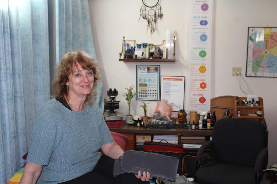 BERKELEY SPRINGS — One of the practitioners at the Berkeley Springs Festival of Light Psychic Fair and Alternative Healing Expo is Andree Thrush of Firehouse Optical and Andree’s Essence of Health.