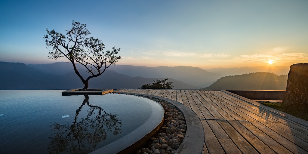Nestling in the Panchalimedu hills, in the midst of lush, varied flora, the Prakriti Shakti Resort in Kerala, India, almost feels like being in paradise. The beauty of nature, the wide sky, the fresh, pure air and the bird calls invite guests to leave behind their everyday lives and tune into themselves and nature.