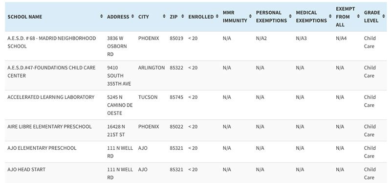 Arizona requires students in school to be vaccinated and the health department collects and reports information for students in child-care centers, kindergarten and sixth grade.