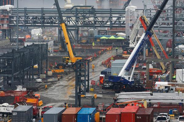 More than 6,000 tradespeople and laborers will be on the site during the peak summer construction period.CreditJared Wickerham for The New York Times