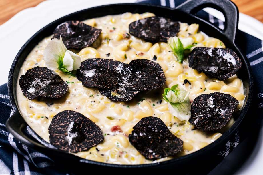 Gratin coquillette truffe at Verjus in San Francisco.