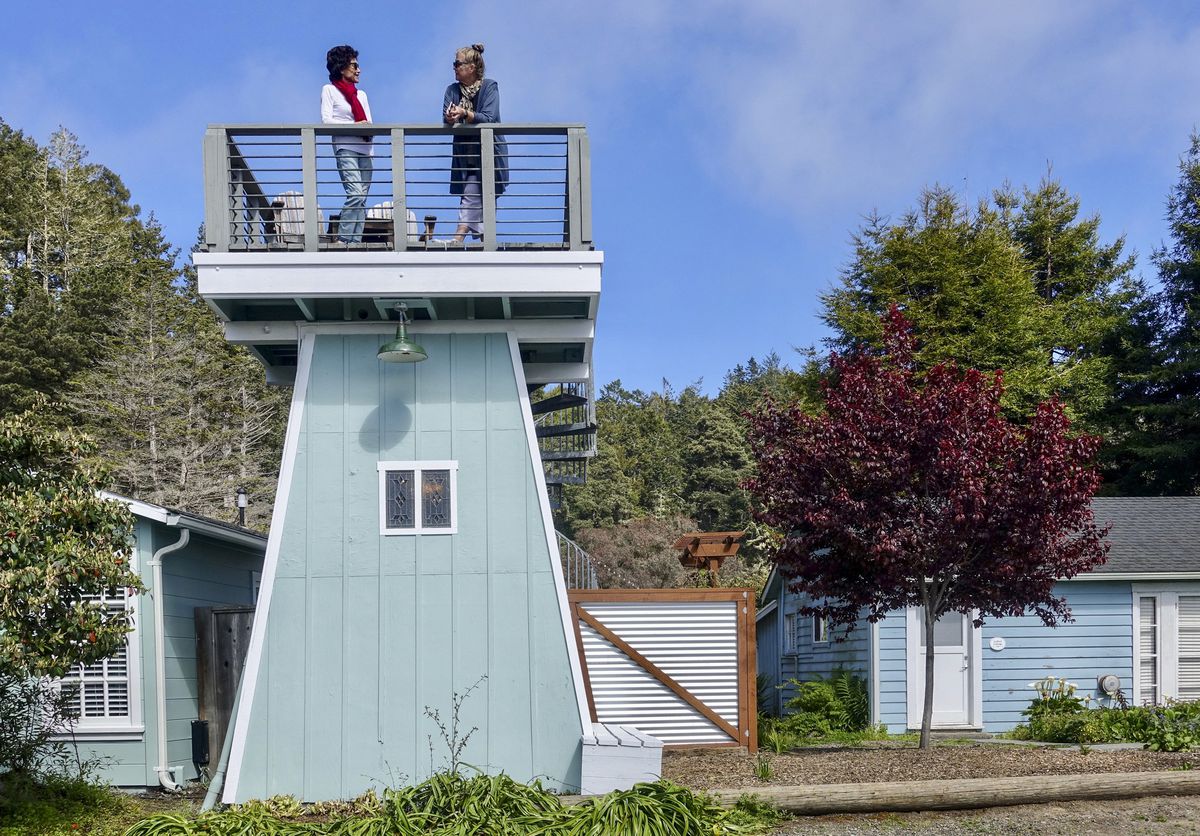 The first water tower where my husband, Paul, and I stayed adjoined the five-room JD House, which was stylishly renovated last year to evoke the sea captain’s home it was in the 19th century. The top of the tower, which once housed the water tank, wasn’t large enough for a deck, but we were content with the rustic-chic ground-floor suite. The sitting area had a sofa, gas fireplace and leather armchair, plus a flat-screen TV and a stack of old books.