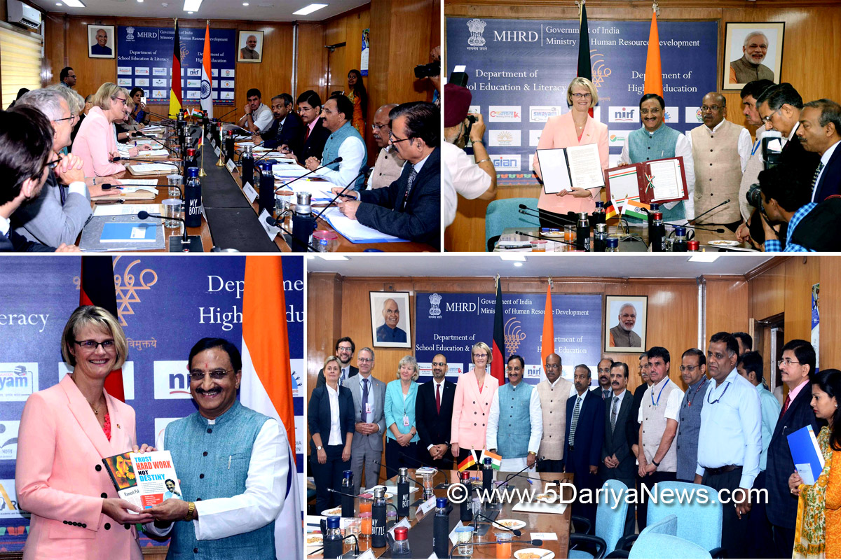 The Union Minister of Human Resource Development, Ramesh Pokhriyal ‘Nishank’, held a high level bilateral meet with a German delegation led by German Federal Minister of Education & Research, Anja Karlilczek on cooperation in the field of Education, in New Delhi today. Minister of State for Human Resource Development, Shri Sanjay Dhotre & Secretary School Education & Literacy Shri Amit Khare were also present on this occasion.During the meeting, two important instruments of cooperation were signed. First was an addendum to the MOU on Cooperation in the Field of Higher Education, signed by MHRD and BMBF on 11.04.2013, through which funding period of Indo-German Partnership has been extended from 1st July, 2020 to 30th June, 2024. Second MOU was signed between University Grants Commission, India and DAAD, Germany for extending the joint partnership programme under “Indo German Partnerships in Higher Education” (IGP) with the objective to enhance long-term partnerships between German and Indian Institutions of higher education by opening up new and innovative areas of cooperation; to enable the participating institutions to develop teaching and research profiles for their partnerships; to contribute significantly to the internationalization strategies of the participating institutions of higher education and thus to enhance the mutual cooperation between the institutions on the whole.