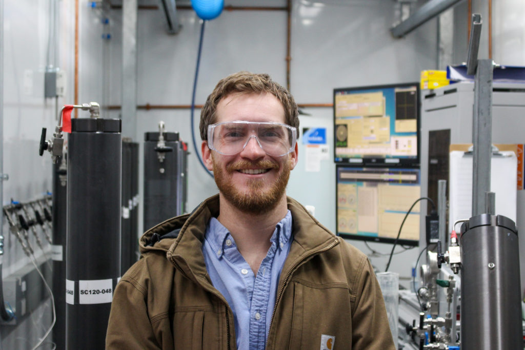 Kris Darnell, a recent doctoral graduate from the University of Texas Jackson School of Geosciences, led a study that shows how energy can be produced from methane hydrates while helping fight climate change by trapping the carbon dioxide underground. He’s pictured in the UT Pressure Core Center, the only university-based facility that can study methane hydrate cores under pressure. The lab allows researchers to study methane hydrate under the same environmental conditions in which they are found.