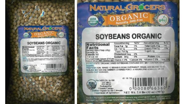 Consumers are urged to check their homes for 2-pound bags of the Natural Grocers brand soybeans with the UPC number 000080663607. Only packages bearing 19-168 and 19-205 as the packed-on dates are subject to recall. The packed-on date can be found in the bottom left-hand corner of the label.