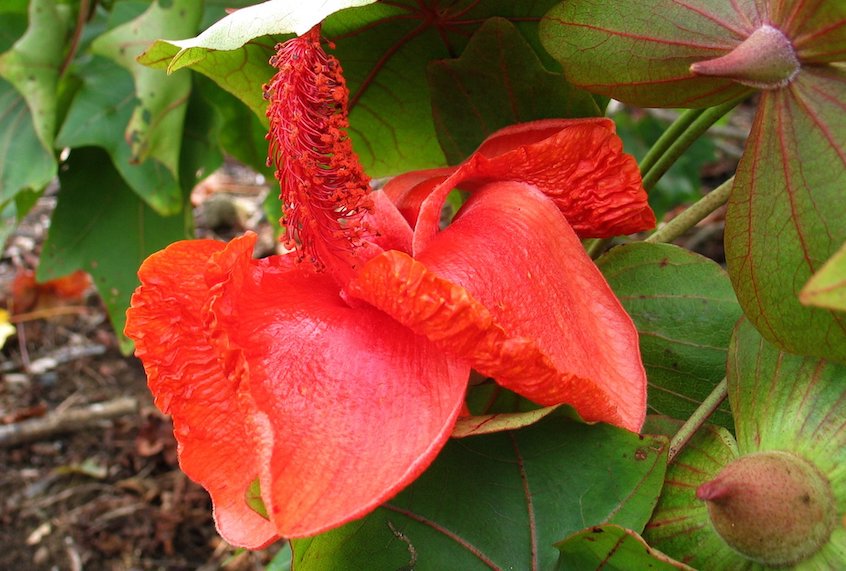 Kokia drynarioides is a small but significant flowering tree endemic to Hawaii’s dry forests. Native Hawaiians used its large, scarlet flowers to make lei. Its sap was used as dye for ropes and nets. Its bark was used medicinally to treat thrush.