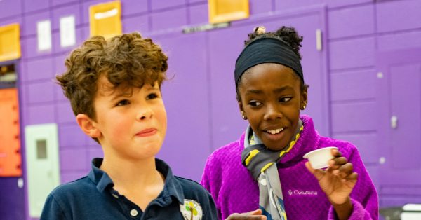“This one is the best,” said Mari, a fifth grader, as she gulped soup from a small cup. “It’s super delicious. I want a big bowl of it to eat at home.”