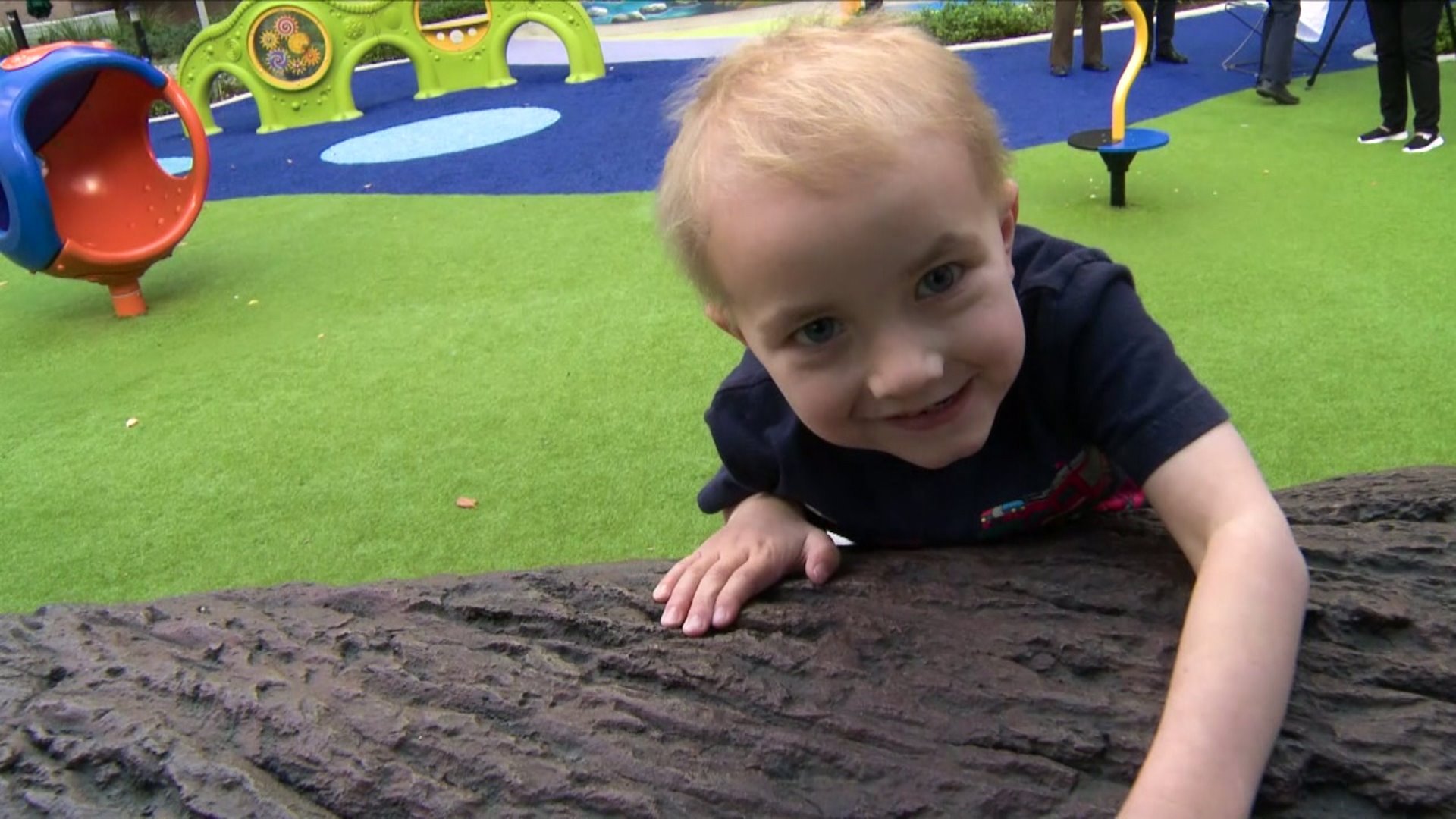 After two years of fighting neuroblastoma, Cashel can’t get enough of everything this playground has to offer.
